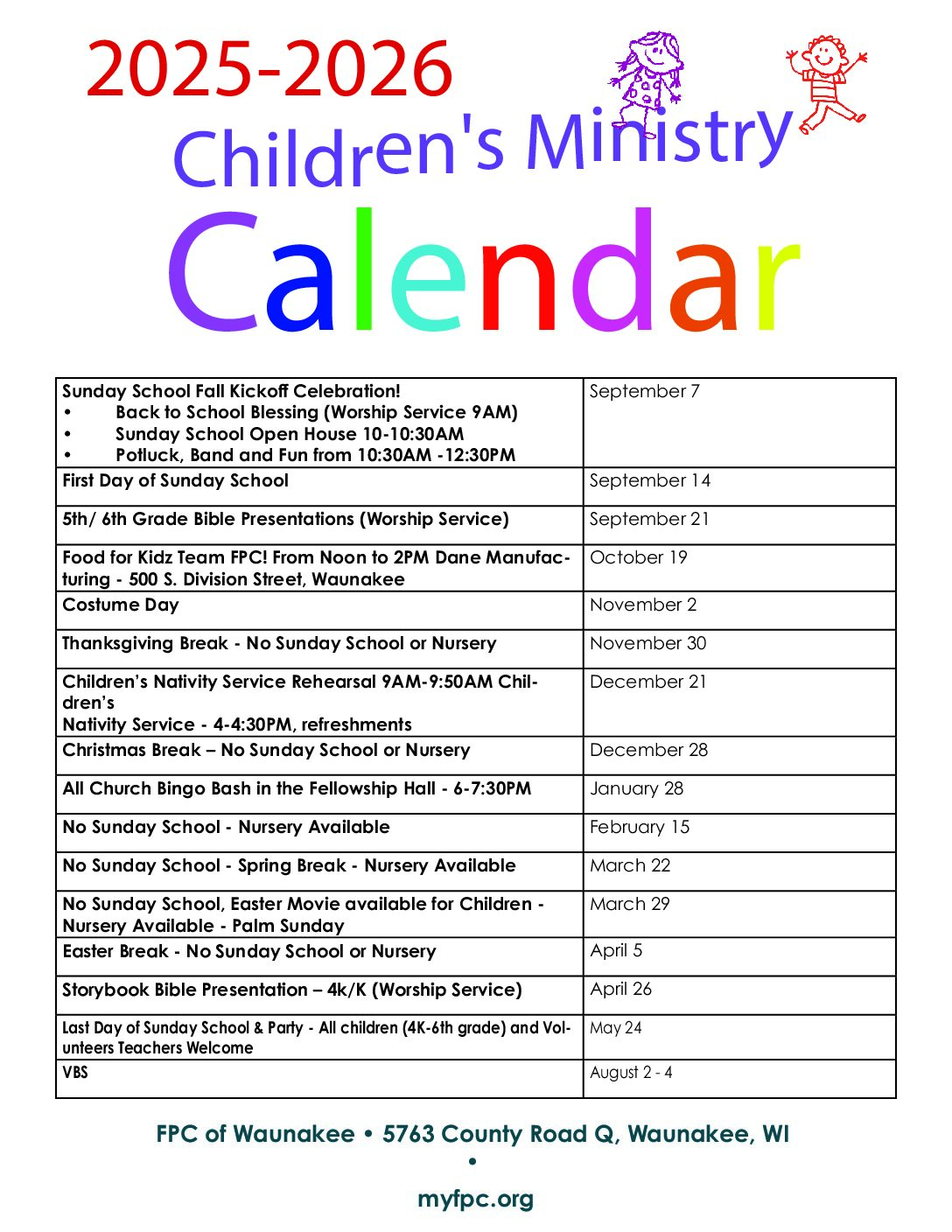Mark your calendars, invite your friends, and join us for a fantastic year in Children’s Ministry. We can’t wait to see your kids grow, learn, and have fun together!